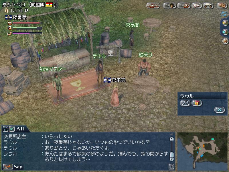 カリブまでアラガレ船員いっぱいで行ったんですが、船員いっぱいだと燃費悪いですねぇ・・・。水が途中でなくなってしまって、ここで名倉を屠ることができれば・・・って真剣に考えてしまった。